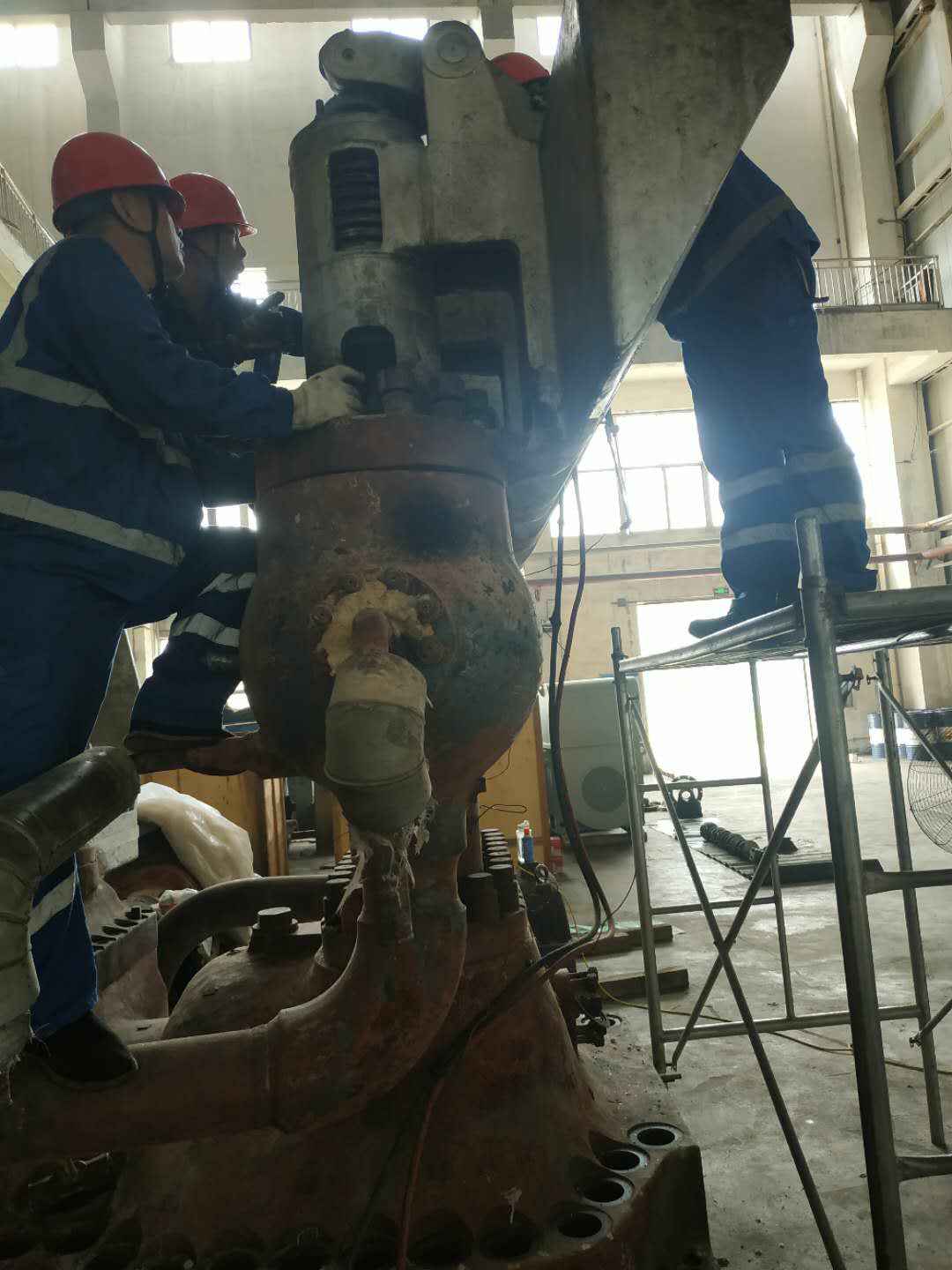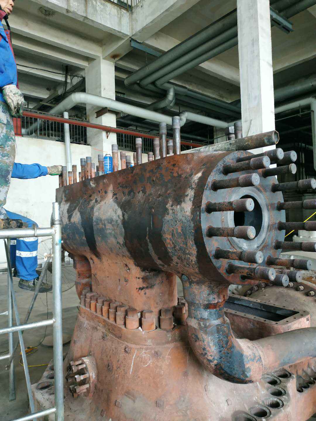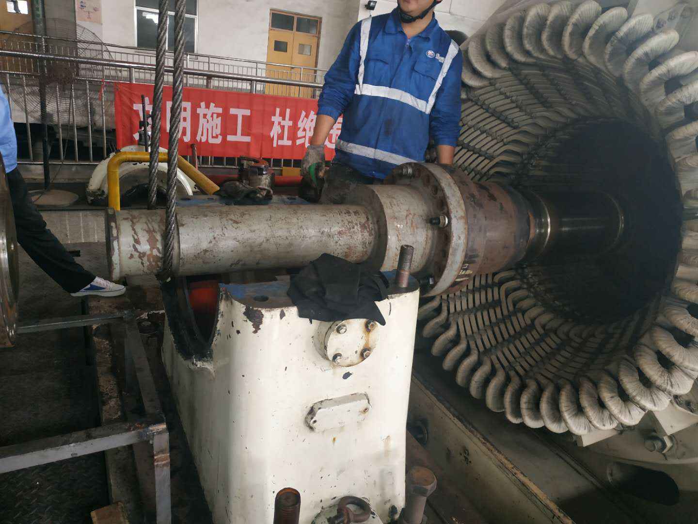 由开云网页版在线登录官网入口-开云(中国)承建的山东海能化学有限责任公司机组B15MW背压式汽轮机组(原 C25抽汽凝汽式机组)大修工程现已完成凝结水泵、油站检修工作,发电机前后轴承座基础垫铁研磨工作,目前蒸汽室螺栓的拆卸工作及发电机定子与转子的清理工作陆续启动,下气缸吊隔板工作也在稳步进行中。