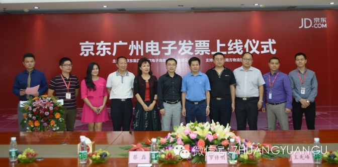 9月15日,京东集团华南区电子发票上线发布会在状元谷国家电商产业园隆重召开,黄埔区经贸局党委罗书记、杭州程阳视觉艺术传媒有限公司副总裁傅江女士、京东华南区副总裁蔡磊先生等主要领导参加了发布会。